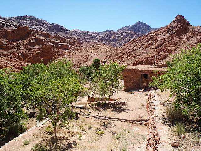 The garden of late Saad Abu Saada, God have mercy on his soul, is now looked after by the sons, mostly Mahmoud. It is a beautiful, well-kept garden which offers all the important facilities visitors need. Mahmoud is a keen gardener and he is keen to improve his place. He is a creative mind experimenting with contemporary ideas, and recently rebuilt the old arisha with an unused greenhouse frame. Its shape is unusual, but has a traditional feel as well, as it is covered with canes and pieces of Bedouin tent fabric, and looks good among the traditional stone buildings. It is reused material, which is more environmentally friendly than buying and/or building anything new, and the design is practical. Mahmoud is now focused on the kitchen and would like to utilise some unused coloured glass bottles to replace the cardboard in the kitchen window to block the sun, plus make shelves and tile the sink area with flat rocks. In the garden there are several stone rooms, some in the main compound, others standing alone. There is also a big water tank; built for irrigation, it is also used as a swimming pool when full. A recently built composting toilet and an older bathroom stand a few steps away from the rooms. Apart from the first 4 photos, they were all taken in 2019.