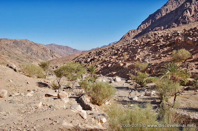 Ein Kid is a secluded, pretty oasis at a narrow, rocky part of Wadi Kid, home to only a few people. You can reach it from several directions from the Nasb area or from Wadi Rumhan. The walks start in Ulad Said country but from the oasis it is Muzeina territory. From the oasis trekkers usually take a 4×4 (you have to organise it in advance as there are no vehicles here) or possibly get a car further in the wadi at the settlement of Seil Riem. In theory you could walk from here all the way to the sea at the Nabq Protectorate in two more days, described in the next trek, but make sure to check with local Muzeina Bedouin if it is possible at the time as some areas might be restricted, and until the end of the walk stay with a Bedouin guide!